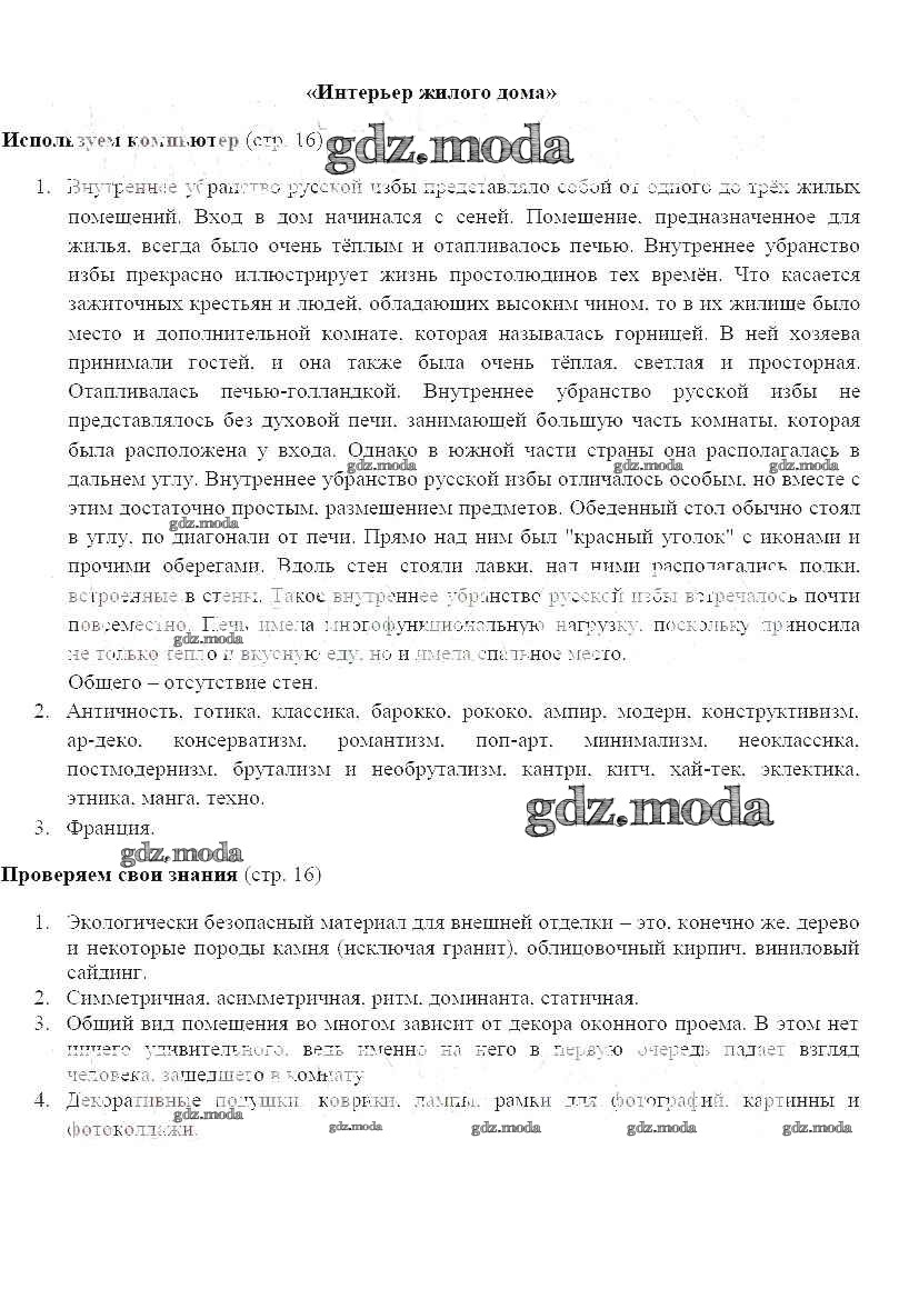 ГДЗ решение к заданию № 16 Технология 6 класс Синица Н.В. Вентана-граф 2019 ФГОС бесплатно на гдз.мода!