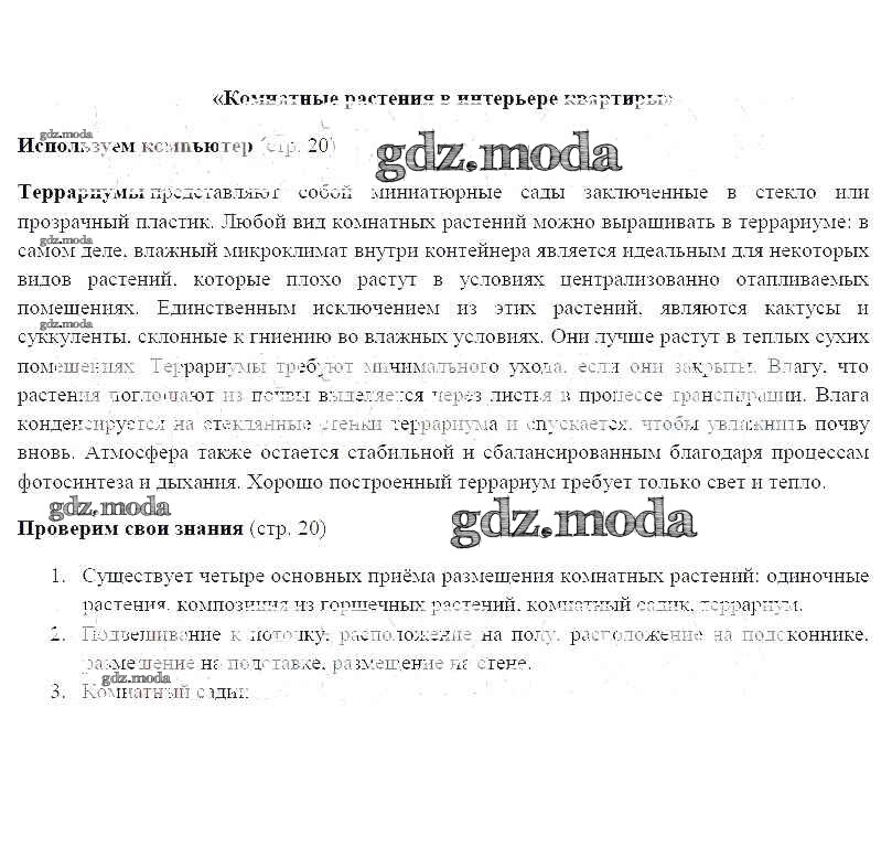 ГДЗ решение к заданию № 20 Технология 6 класс Синица Н.В. Вентана-граф 2019 ФГОС бесплатно на гдз.мода!
