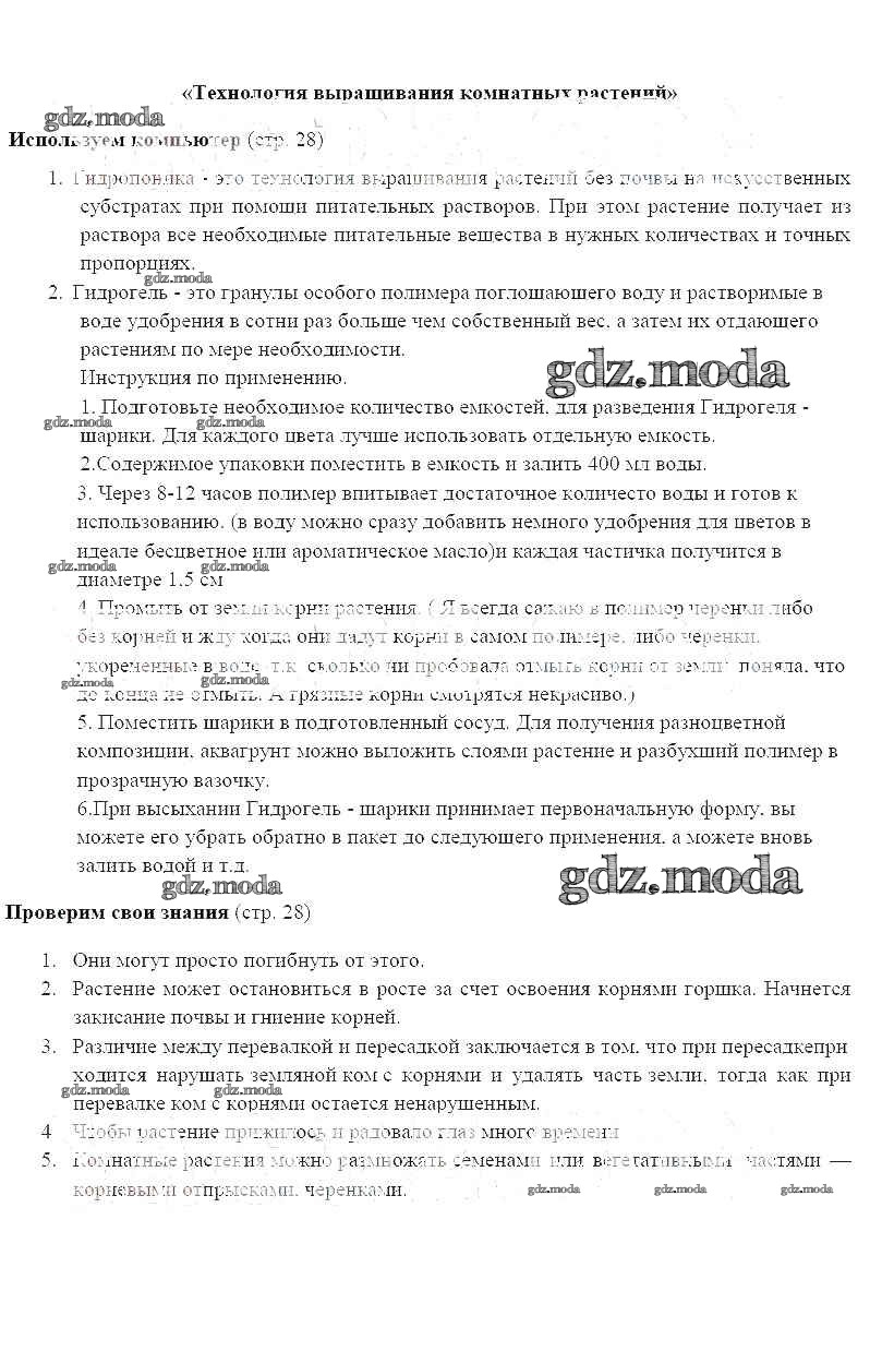 ГДЗ решение к заданию № 28 Технология 6 класс Синица Н.В. Вентана-граф 2019 ФГОС бесплатно на гдз.мода!