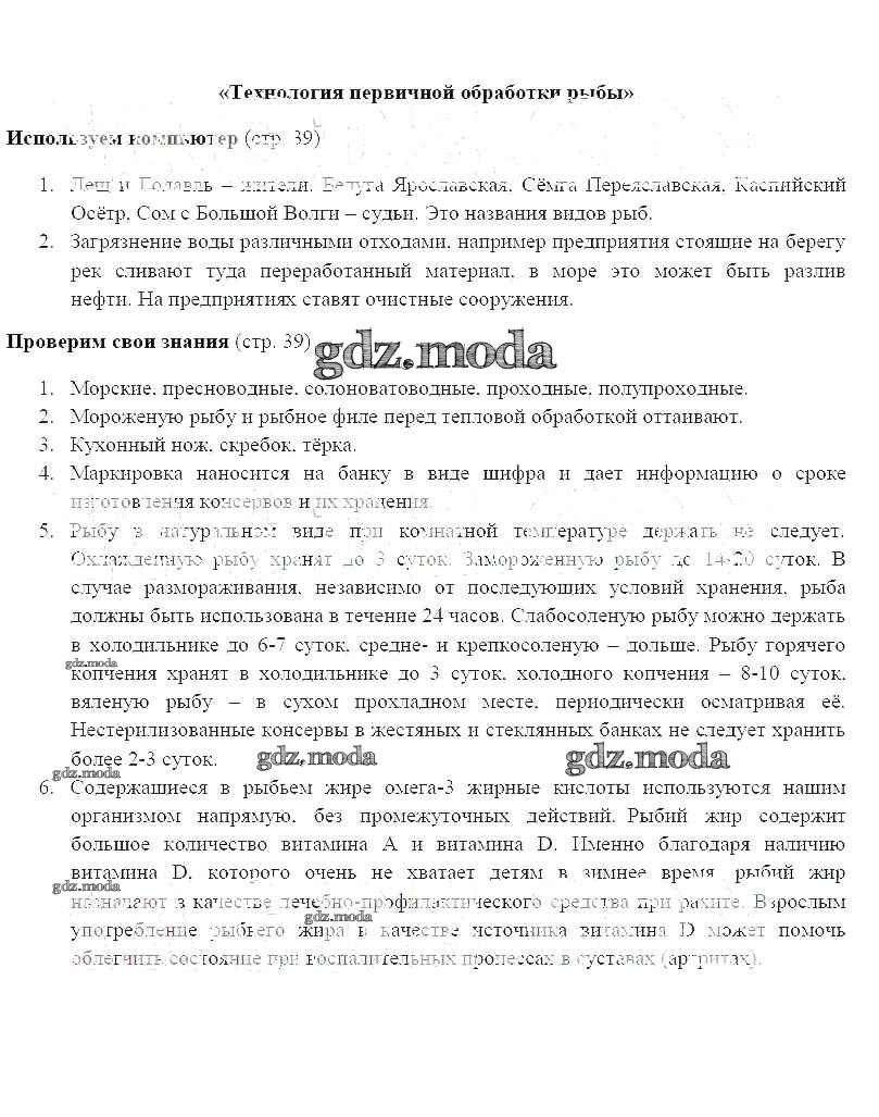 ГДЗ решение к заданию № 39 Технология 6 класс Синица Н.В. Вентана-граф 2019 ФГОС бесплатно на гдз.мода!