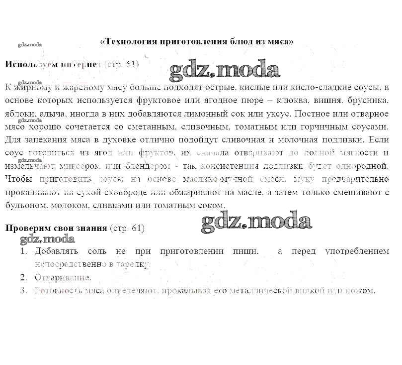 ГДЗ решение к заданию № 61 Технология 6 класс Синица Н.В. Вентана-граф 2019 ФГОС бесплатно на гдз.мода!