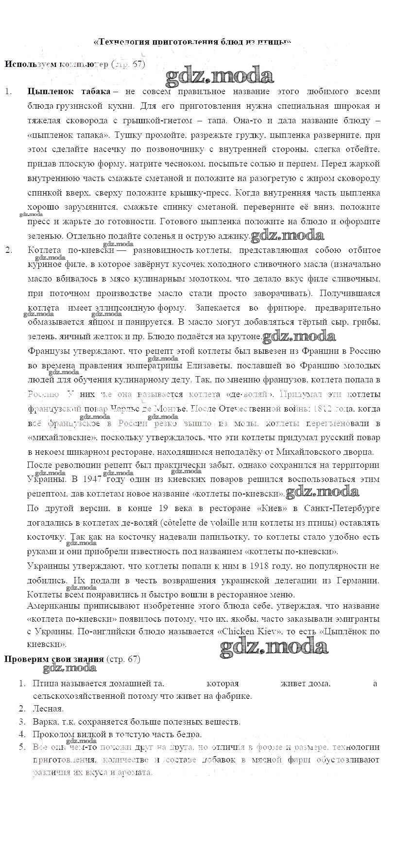 ГДЗ решение к заданию № 67 Технология 6 класс Синица Н.В. Вентана-граф 2019 ФГОС бесплатно на гдз.мода!