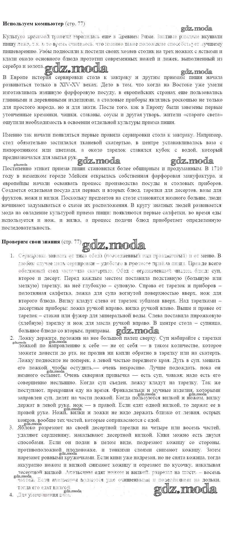 ГДЗ решение к заданию № 77 Технология 6 класс Синица Н.В. Вентана-граф 2019 ФГОС бесплатно на гдз.мода!