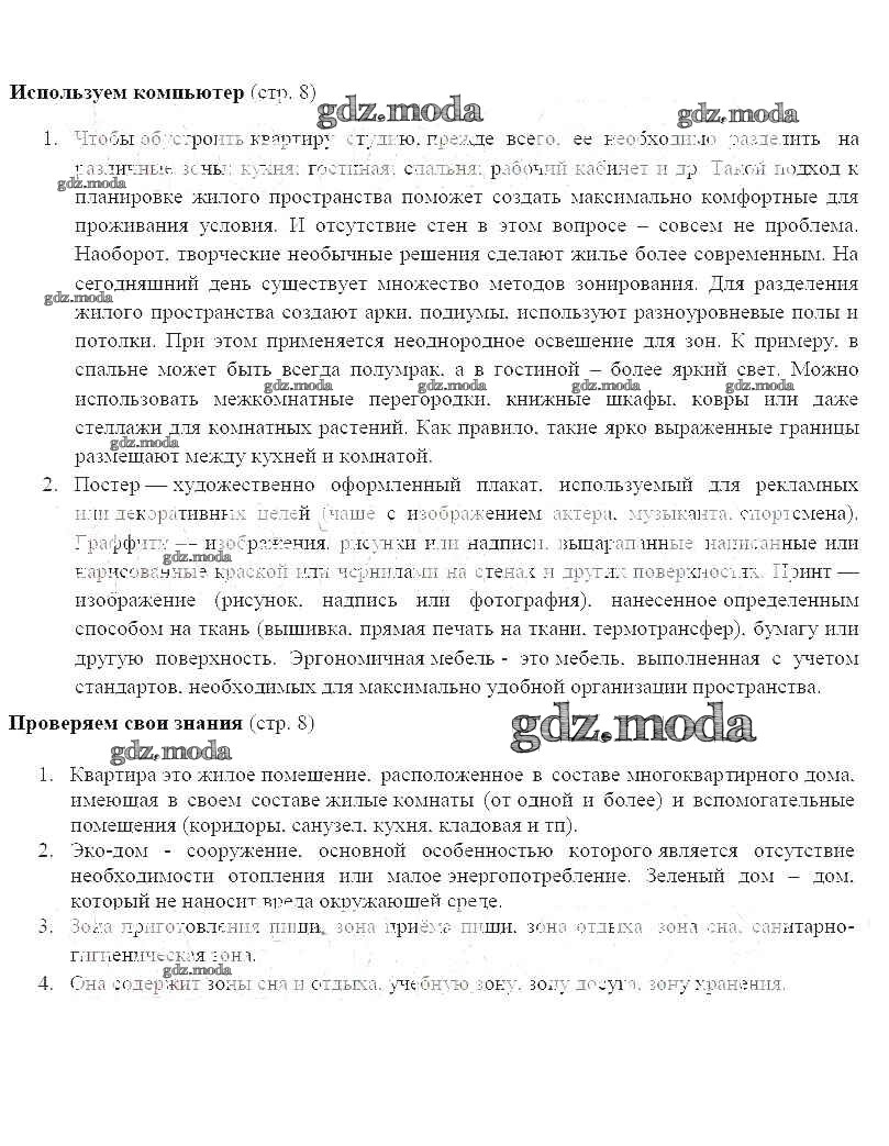 ГДЗ решение к заданию № 8 Технология 6 класс Синица Н.В. Вентана-граф 2019 ФГОС бесплатно на гдз.мода!