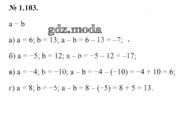 ОТВЕТ на задание № 1.103 Учебник по Алгебре 7 класс Арефьева