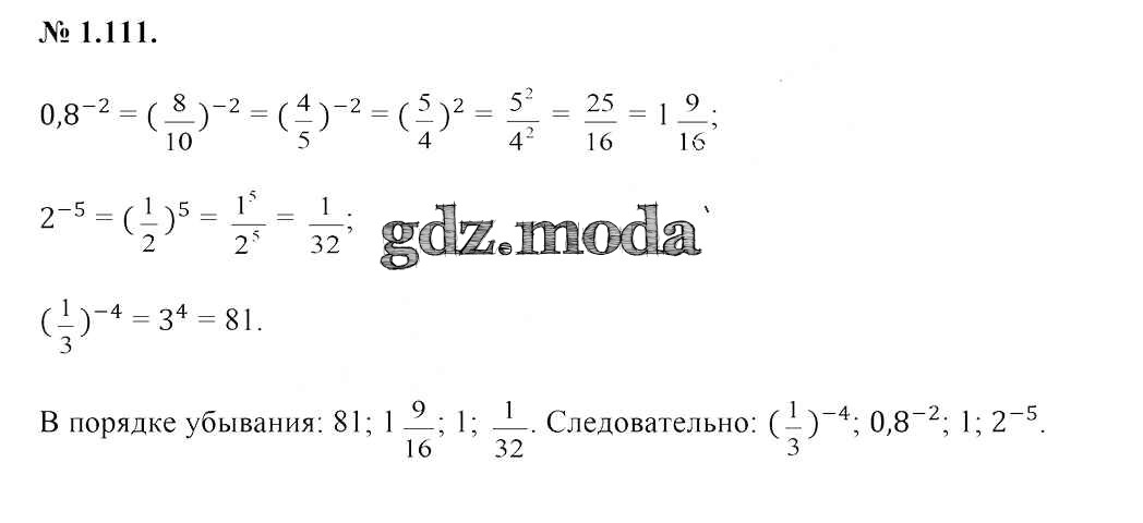 ОТВЕТ на задание № 1.111 Учебник по Алгебре 7 класс Арефьева