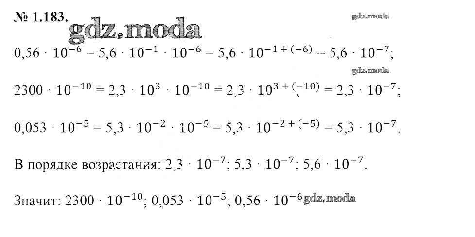 ОТВЕТ на задание № 1.183 Учебник по Алгебре 7 класс Арефьева