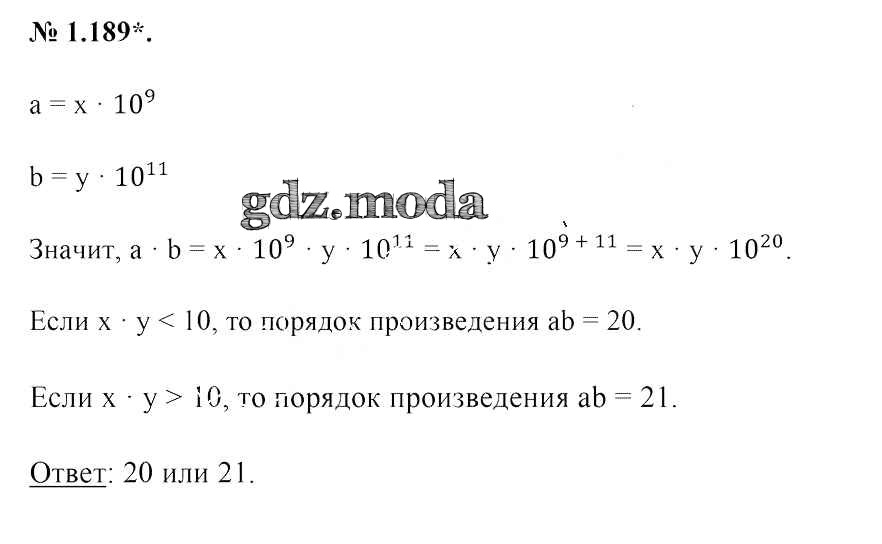 ОТВЕТ на задание № 1.189 Учебник по Алгебре 7 класс Арефьева