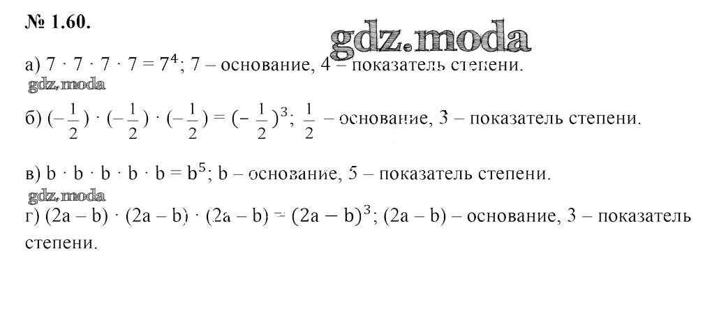 ОТВЕТ на задание № 1.60 Учебник по Алгебре 7 класс Арефьева