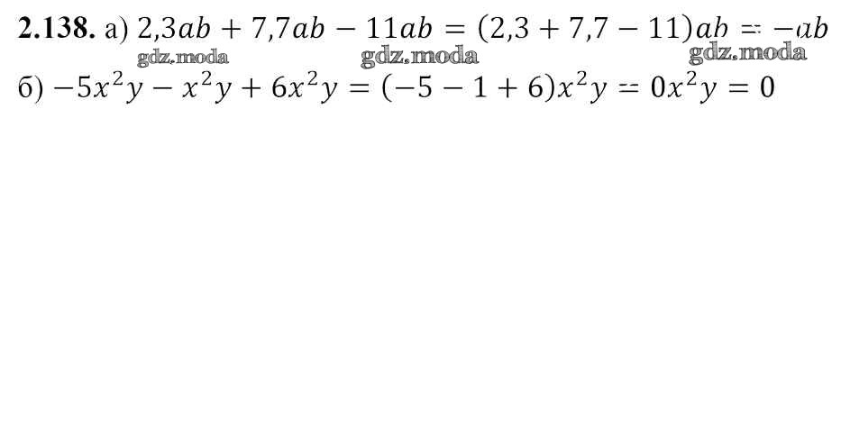 ОТВЕТ на задание № 2.138 Учебник по Алгебре 7 класс Арефьева
