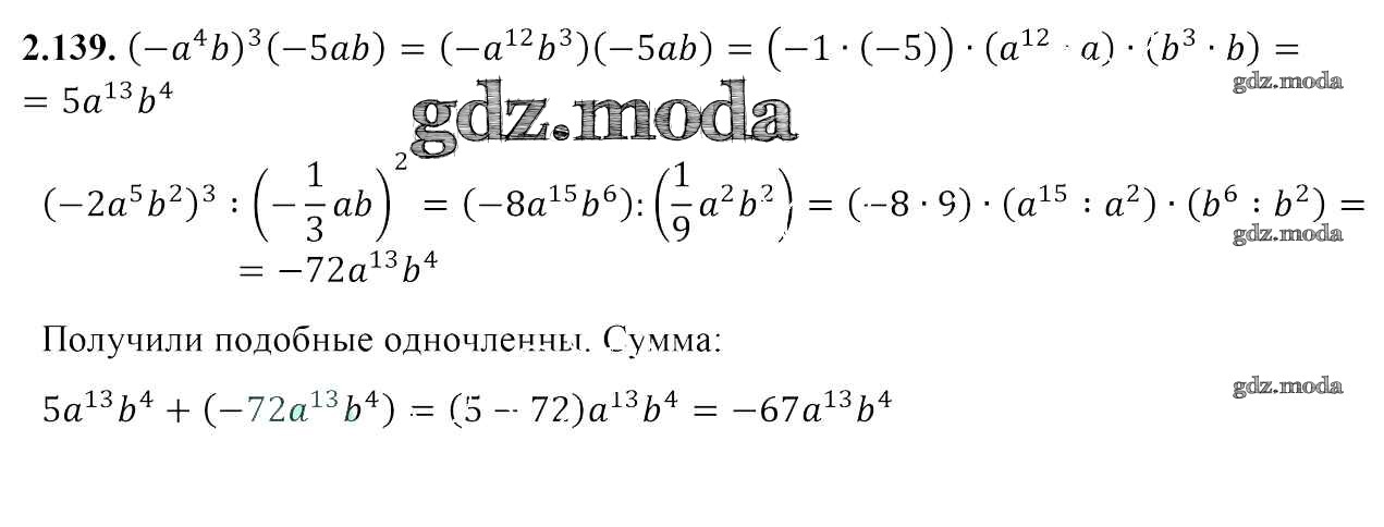 ОТВЕТ на задание № 2.139 Учебник по Алгебре 7 класс Арефьева