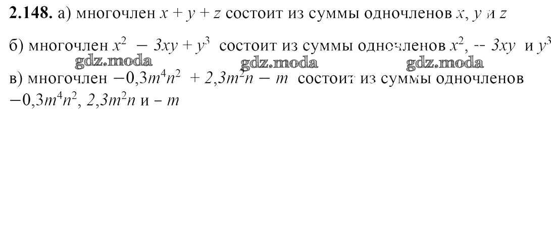 ОТВЕТ на задание № 2.148 Учебник по Алгебре 7 класс Арефьева