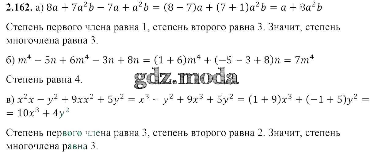 ОТВЕТ на задание № 2.162 Учебник по Алгебре 7 класс Арефьева