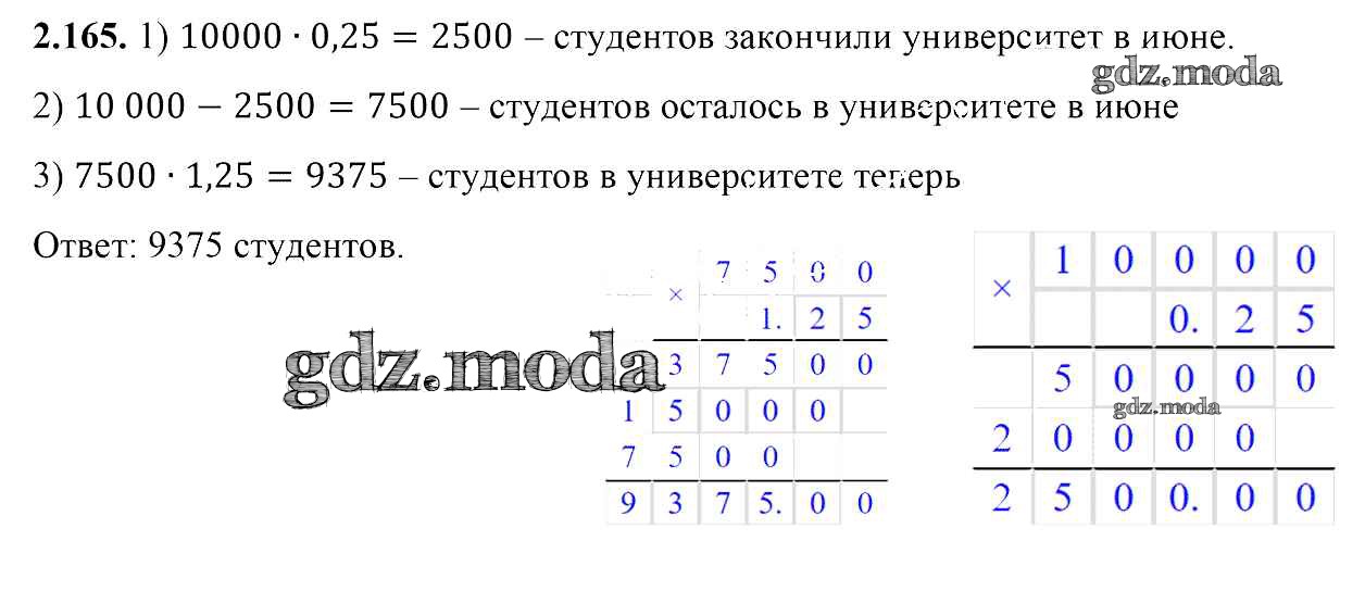 ОТВЕТ на задание № 2.165 Учебник по Алгебре 7 класс Арефьева