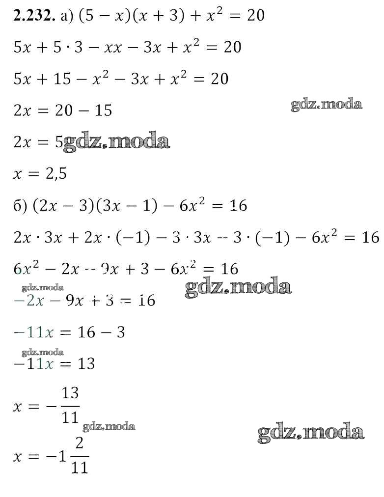 ОТВЕТ на задание № 2.232 Учебник по Алгебре 7 класс Арефьева