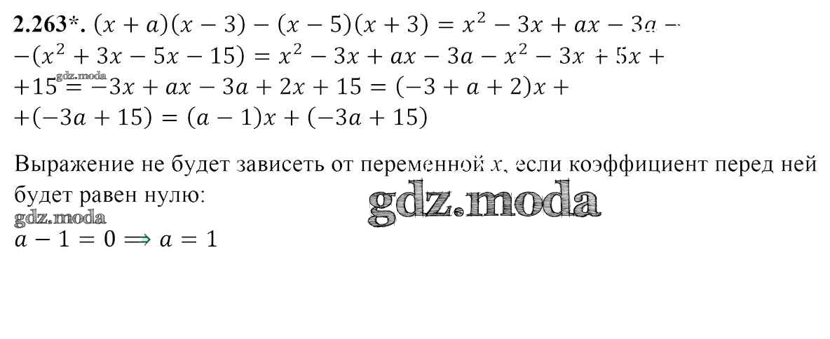 ОТВЕТ на задание № 2.263 Учебник по Алгебре 7 класс Арефьева