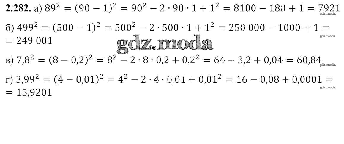 ОТВЕТ на задание № 2.282 Учебник по Алгебре 7 класс Арефьева