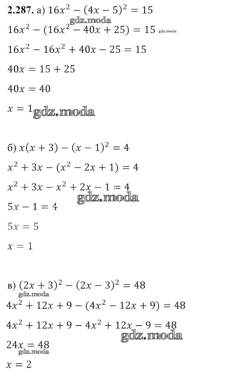 ОТВЕТ на задание № 2.287 Учебник по Алгебре 7 класс Арефьева