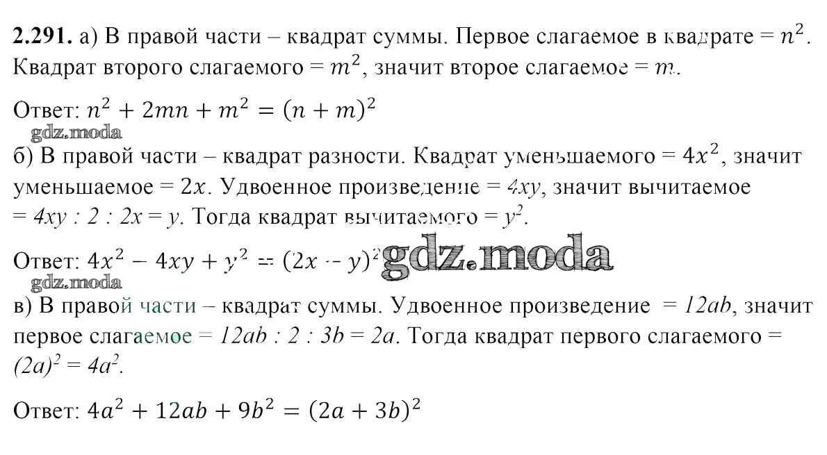 ОТВЕТ на задание № 2.291 Учебник по Алгебре 7 класс Арефьева