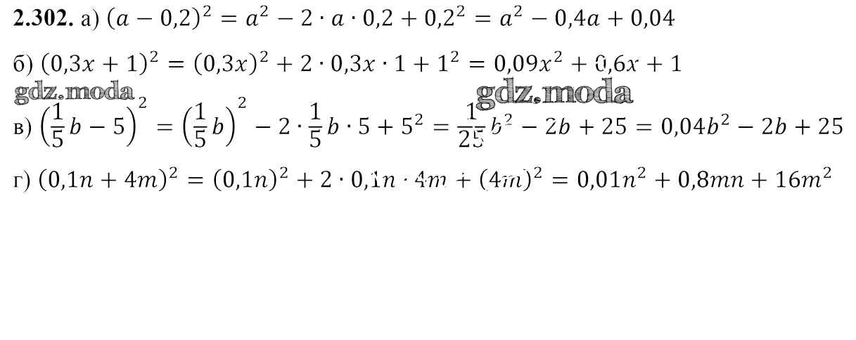 ОТВЕТ на задание № 2.302 Учебник по Алгебре 7 класс Арефьева