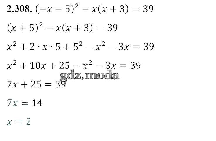 ОТВЕТ на задание № 2.308 Учебник по Алгебре 7 класс Арефьева