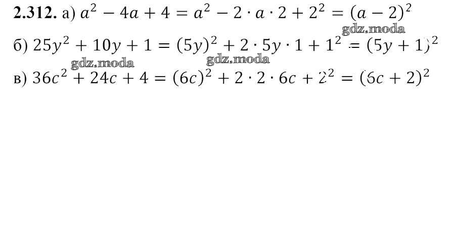 ОТВЕТ на задание № 2.312 Учебник по Алгебре 7 класс Арефьева