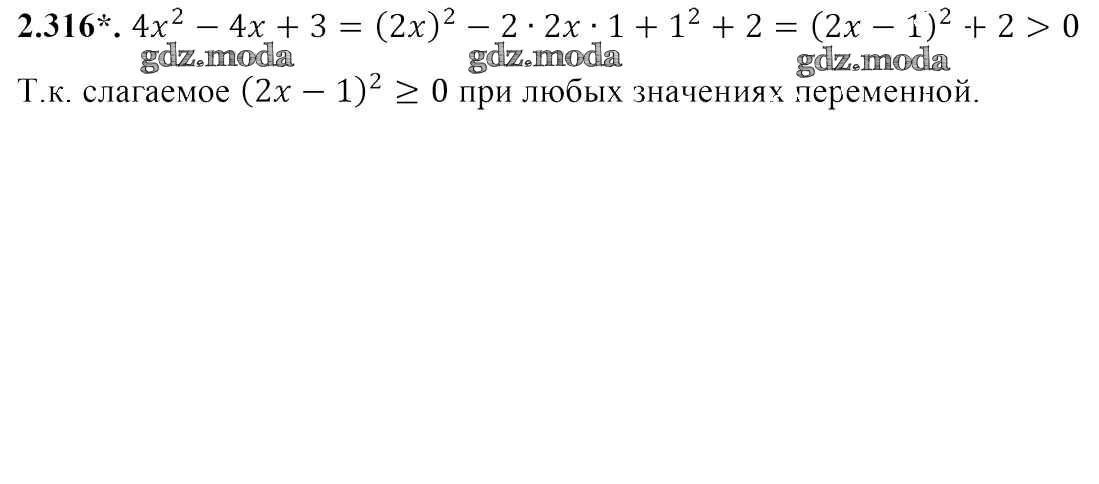 ОТВЕТ на задание № 2.316 Учебник по Алгебре 7 класс Арефьева