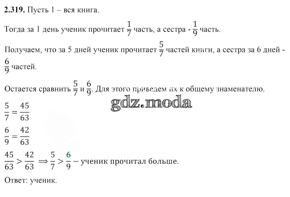 ОТВЕТ на задание № 2.319 Учебник по Алгебре 7 класс Арефьева