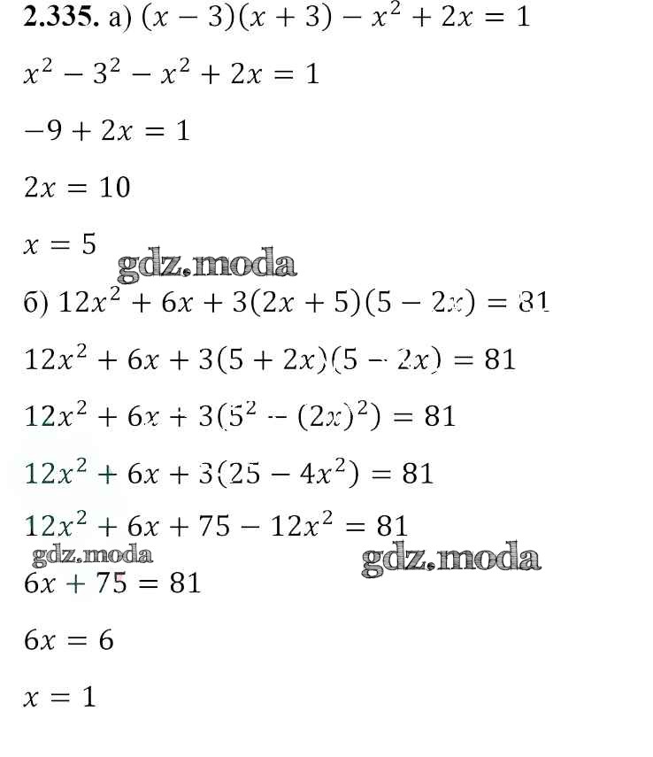 ОТВЕТ на задание № 2.335 Учебник по Алгебре 7 класс Арефьева