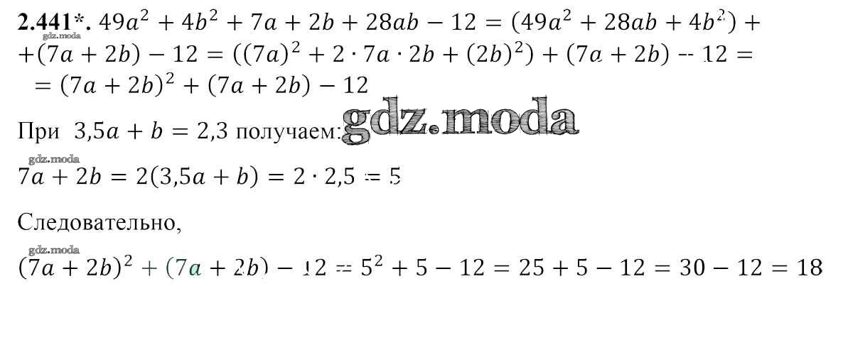 ОТВЕТ на задание № 2.441 Учебник по Алгебре 7 класс Арефьева