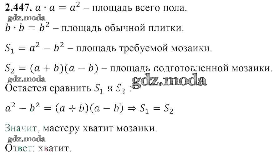 ОТВЕТ на задание № 2.447 Учебник по Алгебре 7 класс Арефьева
