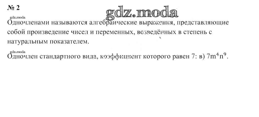 ОТВЕТ на задание № 2 Учебник по Алгебре 7 класс Арефьева