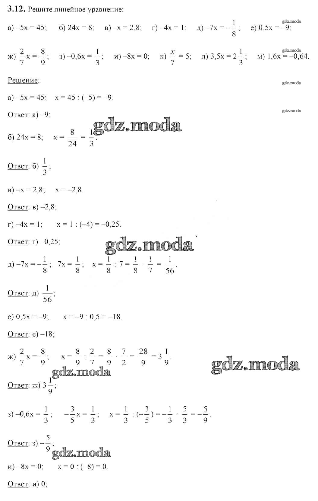 ОТВЕТ на задание № 3.12 Учебник по Алгебре 7 класс Арефьева