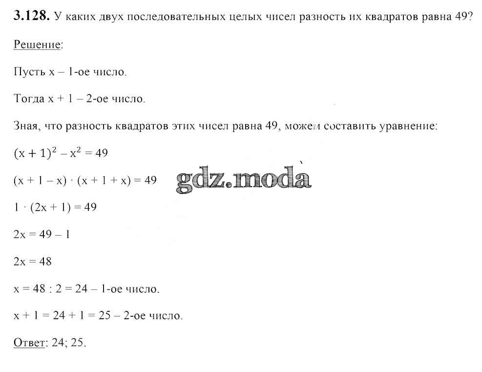 ОТВЕТ на задание № 3.128 Учебник по Алгебре 7 класс Арефьева