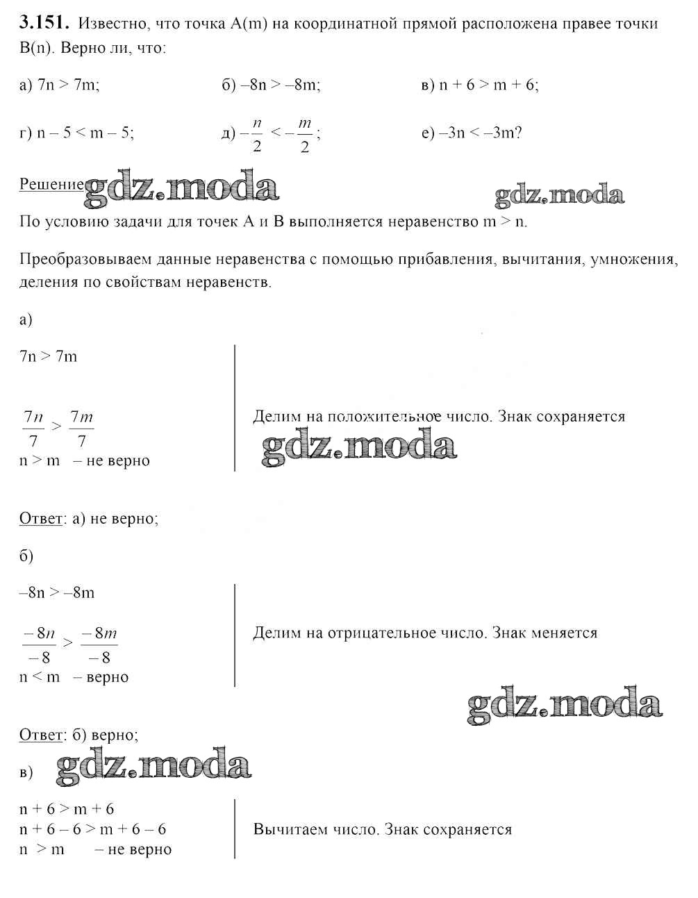 ОТВЕТ на задание № 3.151 Учебник по Алгебре 7 класс Арефьева