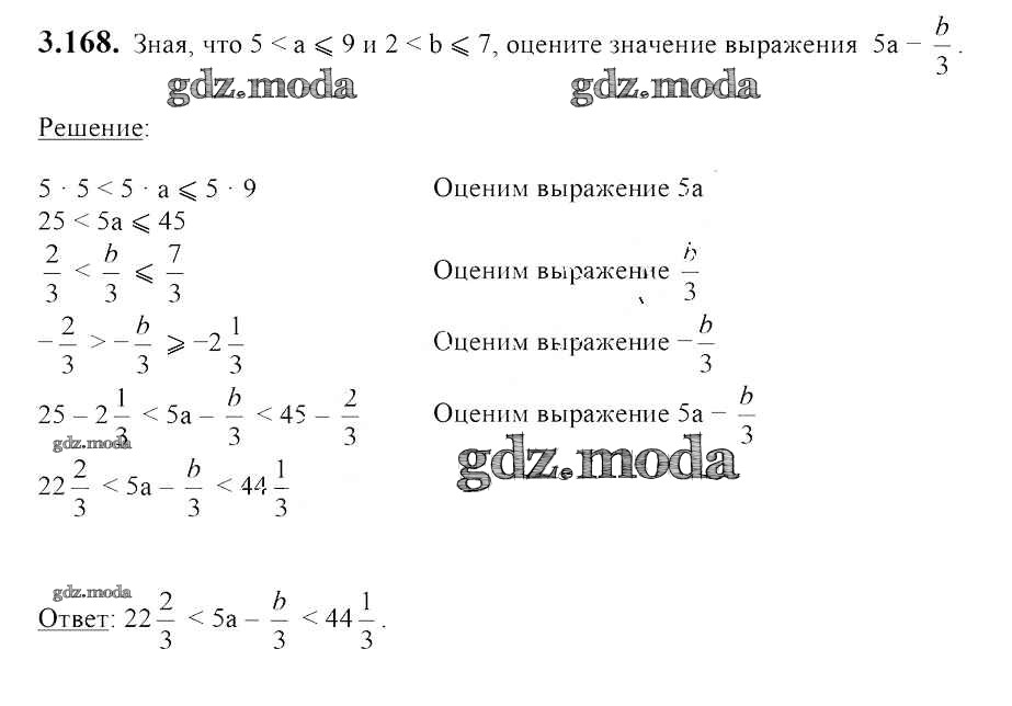 ОТВЕТ на задание № 3.168 Учебник по Алгебре 7 класс Арефьева