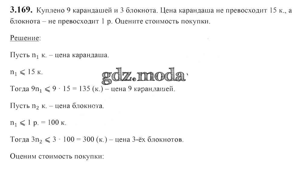ОТВЕТ на задание № 3.169 Учебник по Алгебре 7 класс Арефьева