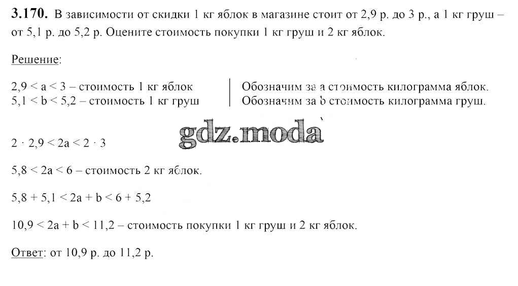 ОТВЕТ на задание № 3.170 Учебник по Алгебре 7 класс Арефьева
