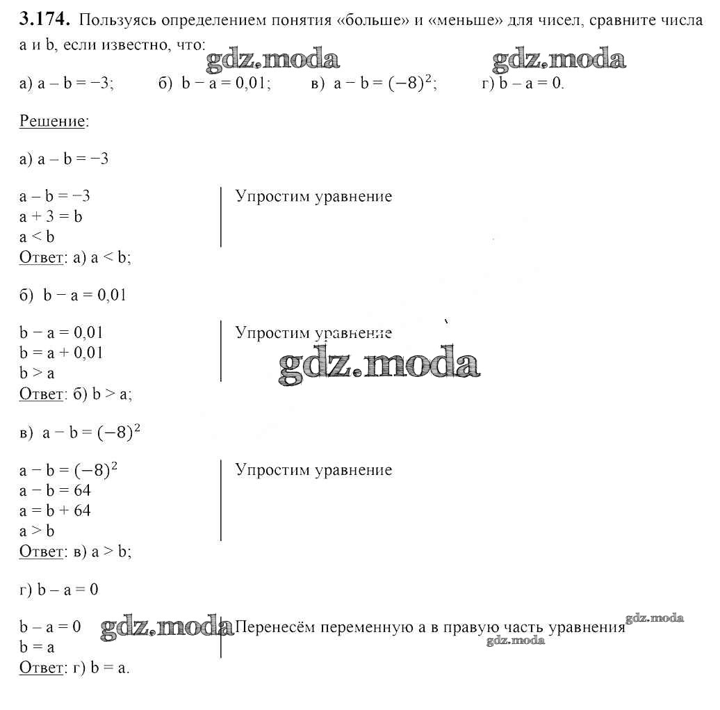 ОТВЕТ на задание № 3.174 Учебник по Алгебре 7 класс Арефьева