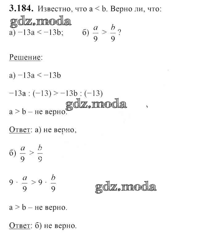 ОТВЕТ на задание № 3.184 Учебник по Алгебре 7 класс Арефьева