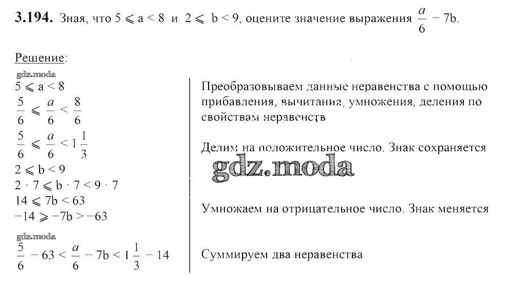 ОТВЕТ на задание № 3.194 Учебник по Алгебре 7 класс Арефьева