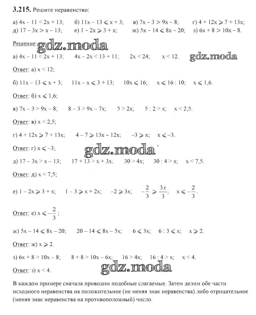 ОТВЕТ на задание № 3.215 Учебник по Алгебре 7 класс Арефьева