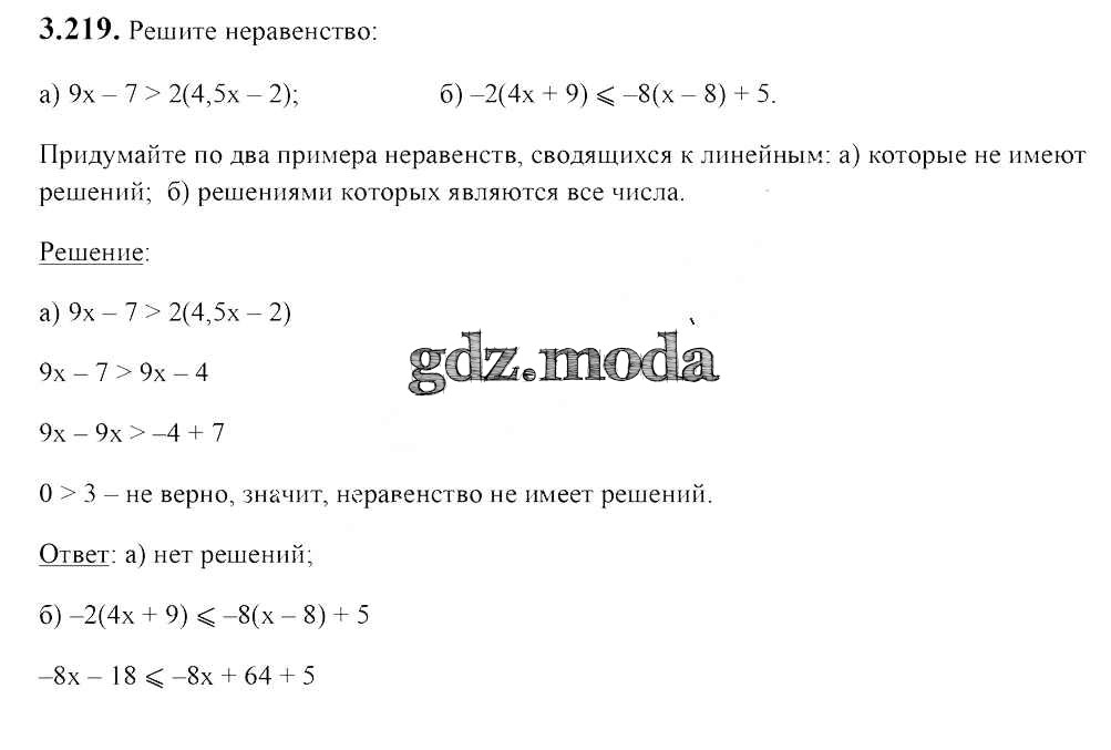 ОТВЕТ на задание № 3.219 Учебник по Алгебре 7 класс Арефьева