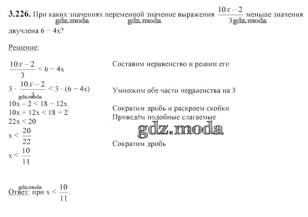 ОТВЕТ на задание № 3.226 Учебник по Алгебре 7 класс Арефьева