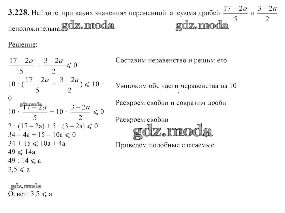 ОТВЕТ на задание № 3.228 Учебник по Алгебре 7 класс Арефьева