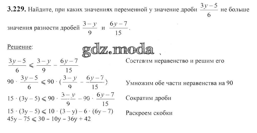 ОТВЕТ на задание № 3.229 Учебник по Алгебре 7 класс Арефьева