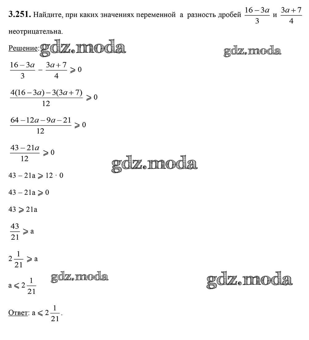 ОТВЕТ на задание № 3.251 Учебник по Алгебре 7 класс Арефьева