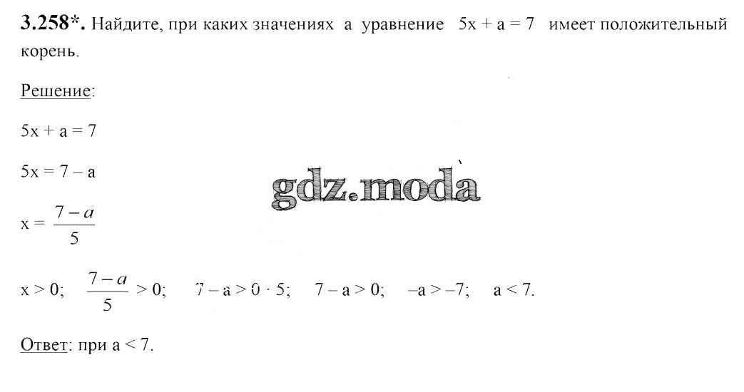 ОТВЕТ на задание № 3.258 Учебник по Алгебре 7 класс Арефьева