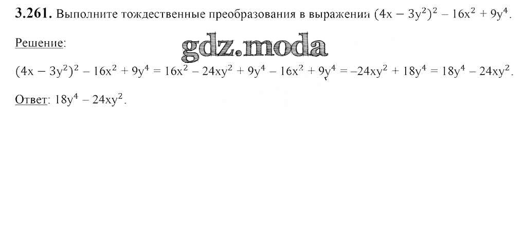 ОТВЕТ на задание № 3.261 Учебник по Алгебре 7 класс Арефьева