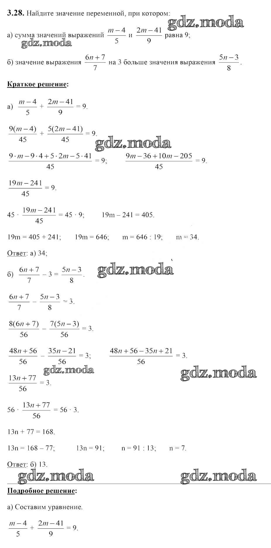 ОТВЕТ на задание № 3.28 Учебник по Алгебре 7 класс Арефьева